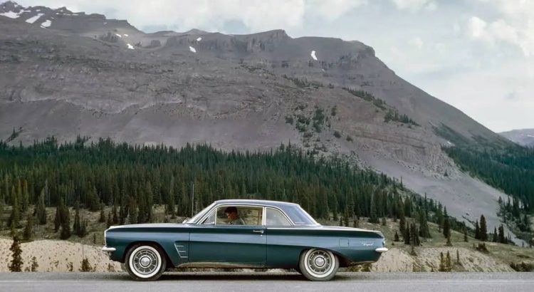 Nous commençons notre voyage avec une Pontiac Tempest Le Mans de 1962, qui serpente dans les montagnes. Ce modèle unique se distingue par son moteur avant et sa transmission arrière grâce à un arbre de transmission flexible, tel un danseur sur un fil. Sous le capot, le choix des moteurs se limitait à trois quatre cylindres de 194,5 pouces cubes ou un rare V8 de 215 pouces cubes, héritage de Buick. La version Le Mans apportait une touche sportive avec des sièges baquets. Un vrai petit bijou des routes américaines !