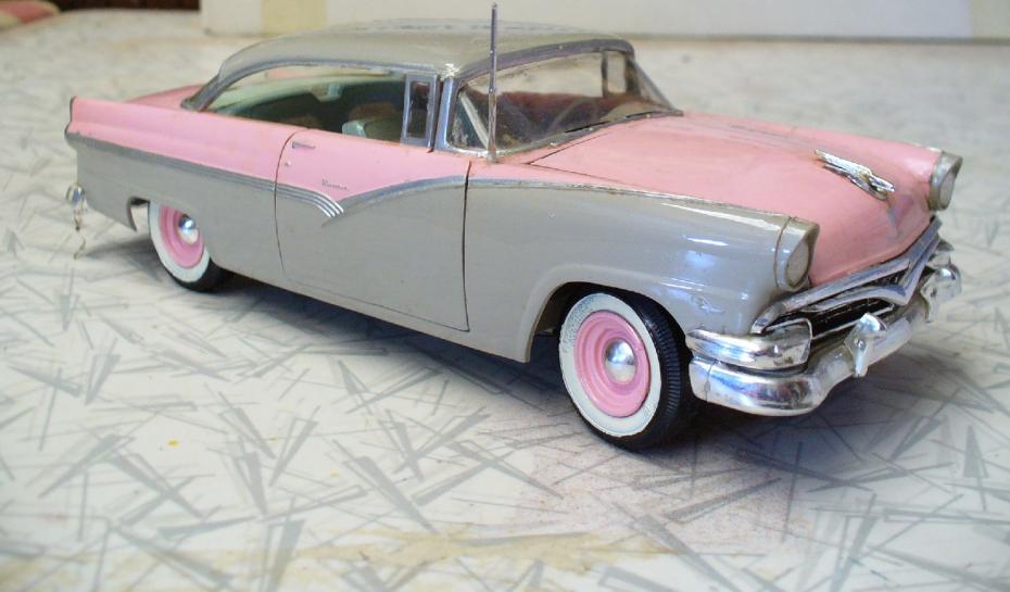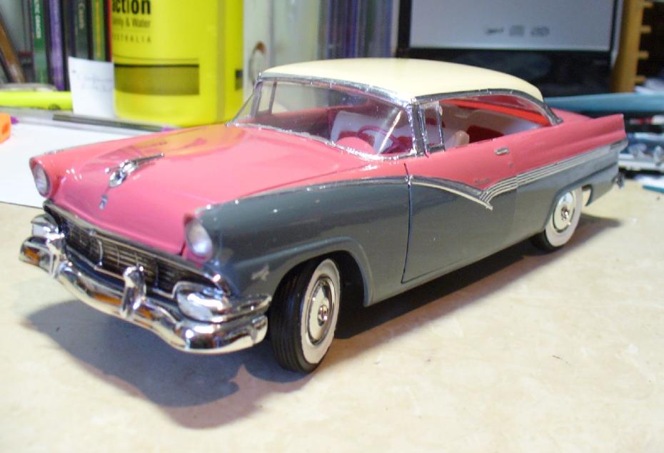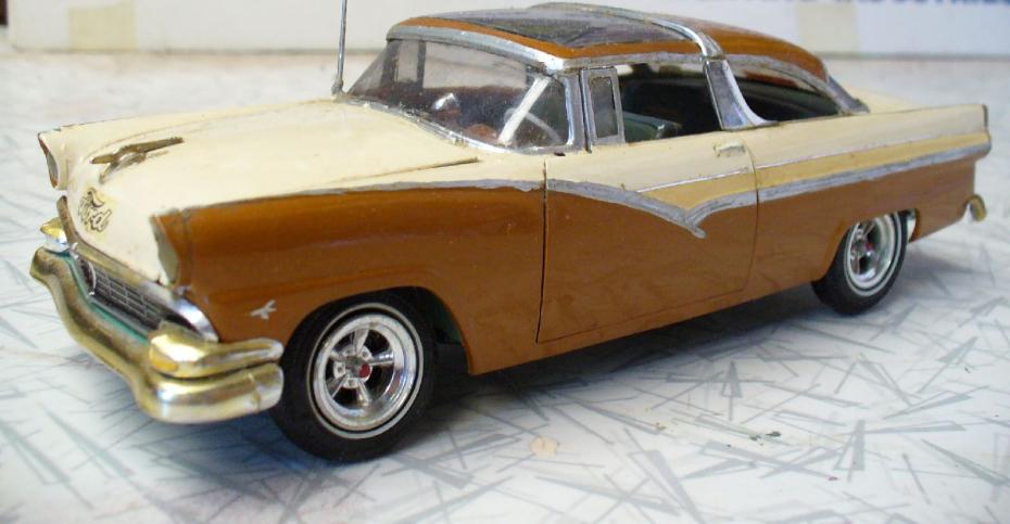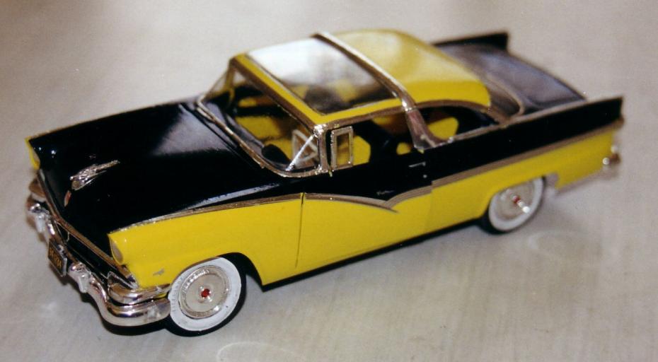 Mon premier modèle de Ford de 1956 a été monté vers 1974. Je me souviens avoir découvert le kit dans un catalogue qui circulait dans ma classe. Après quelques négociations avec un commerçant local, j’ai pu obtenir ce modèle tant convoité. À l’époque, je ne savais pas encore faire la distinction entre les différentes années de modèle et je me suis lancé dans la construction d’une Customline en trois tons, bien que je sois tombé dans le piège de placer les finitions au mauvais endroit. Mais chaque erreur m’a permis d’apprendre et d’affiner ma technique.